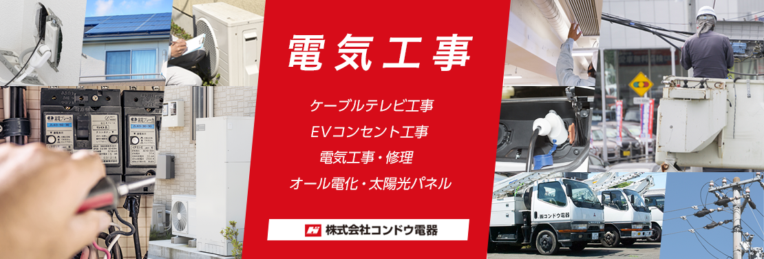 エアコン等の機器取付や修理、オール電化など、様々な電気工事に対応しています。